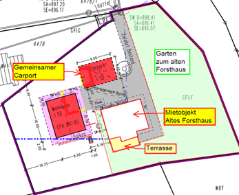 (1-2 witterungsgeschützte Stellplätze) sowie der gesamte Garten südlich und östlich des Hauses.